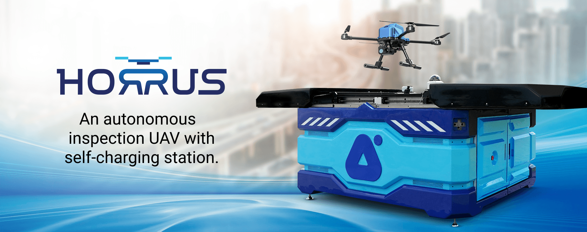 Designed for unmanned aerial inspection and surveillance missions in remote and dangerous areas, HORRUS provides a self-sustained UAV with docking station, self-charging and data collection. Working together as a team, UAV provides an aerial overview of the site while ground robots inspect up close as needed.